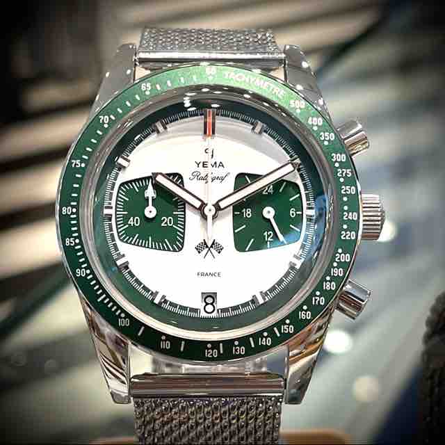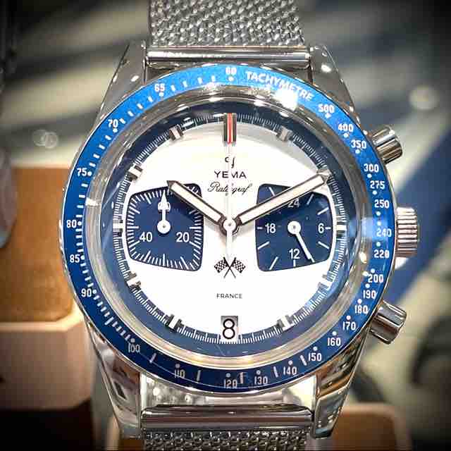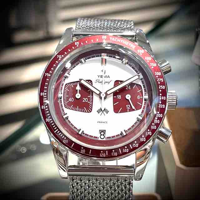 “ラリーグラフ”をベースに製作されたイエマ初のクォーツクロノグラフ。