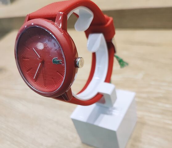 3時位置のラコステの象徴であるワニのロゴをポイント。